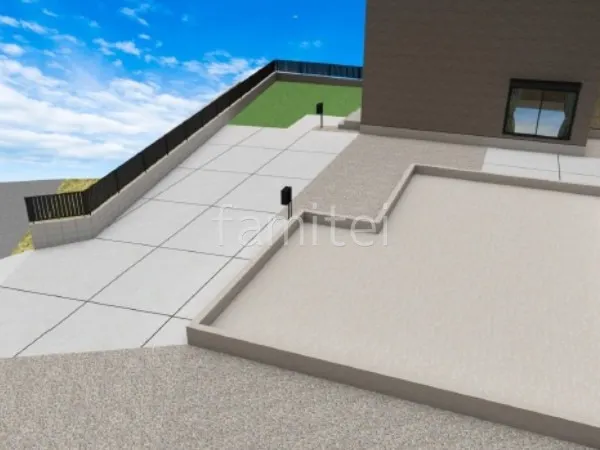 土間コンクリートと人工芝でスタンダードな新築ベーシック セミクローズ外構