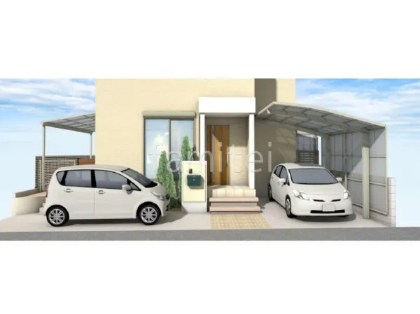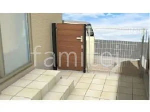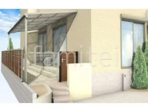 お庭スペースに1階用テラス屋根 YKKAP ソラリアFを設置し、タイルデッキと組み合わせることで快適に過ごせる屋外空間を作りました。 また、目隠しフェンス LIXIL 木製調AB YL2型を配置することで、プライバシーを守りながら温かみのある雰囲気を演出。 お庭の出入口には片開き門扉 LIXIL 木製調AA YM1型を採用し、統一感のあるデザインで動線を整えました。 建物横には前面パネルと側面パネルを備えた1階用テラス屋根 YKKAP ソラリアFを追加し、雨風を防ぎながら多目的に活用できるスペースを確保しました。