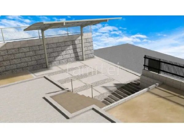 駐車スペースに1台用カーポート LIXIL ネスカRを設置し、車を雨や紫外線からしっかりと保護します。 アプローチにはコンクリート枕木 東洋工業 レイルスリーパーペイブライトを採用し、自然な風合いと温かみを感じられるデザインに仕上げました。 門柱には細割タイル LIXIL セラヴィオSを使用し、重厚感のある門まわりに。 玄関階段は手摺 LIXIL アーキレールを設けることで、安全性を高めました。