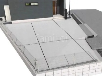1階用テラス屋根 YKKAP ソラリアFを設置し、雨の日でも洗濯物干しや外作業がしやすい快適なスペースを確保しました。 門まわりには宅配ボックス付き機能門柱 LIXIL FTを設置し、不在時でも荷物を受け取れる便利さと、スマートなデザイン性を両立しています。 お庭にはメンテナンスフリーな人工芝を敷き、一年を通して美しい緑を楽しめます。 さらに、お庭周囲を目隠しフェンス LIXIL 木製調AB YS3型で囲み、プライバシーを守りながら温かみのある外観に仕上げました。