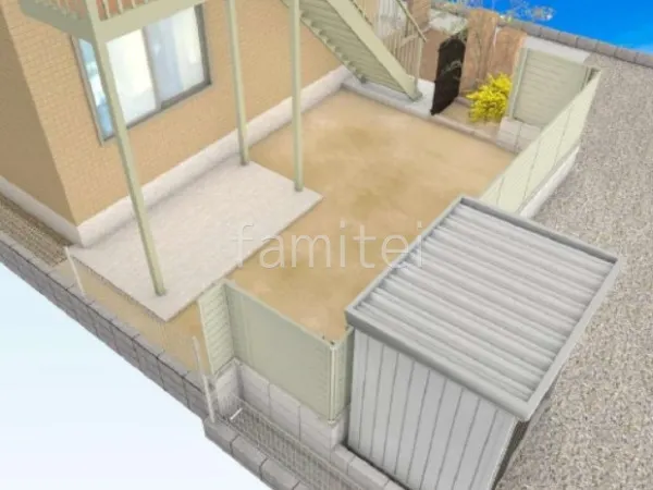 お庭の周囲には目隠しフェンス LIXIL AB YS3型を設置し、外部からの視線をしっかり遮ることでプライバシーを確保します。 門まわりには化粧ブロック ユニソン シャモティを使用した門柱を採用し、重厚感と温かみを兼ね備えたデザインに仕上げました。 さらに、アプローチと駐車スペースには耐久性に優れた土間コンクリートを施工し、すっきりとした印象で使い勝手を向上しました。