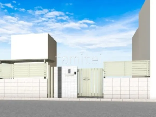 道路境界にブロックを積んだ上に目隠しフェンス LIXIL AB YS3型を設置し、外部からの視線をしっかり遮り、プライバシーを確保しました。 門まわりには細割タイル LIXIL セラヴィオを貼り仕上げたタイル門柱を採用し、存在感のあるエントランスに仕上げました。 また、親子開き門扉 LIXIL AB TS2型を設けることで、防犯性を向上しました。 さらに、駐輪スペースにサイクルポート LIXIL ネスカRミニを設置することで、雨や日差しから自転車を守ります。