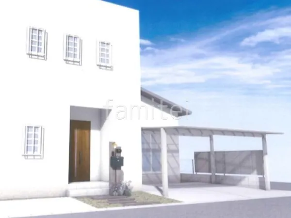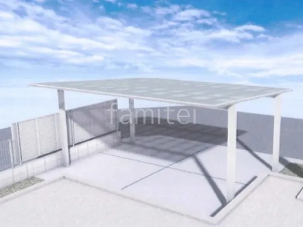 コンクリート枕木 東洋工業 ヴィンテージウッド スリーパー ペイブをアプローチと門柱に使用し、自然素材の風合いと耐久性を両立し、門まわりに温かみを添えます。 駐車スペースに2台用カーポート YKKAP エフルージュFIRSTを設置し、スタイリッシュなデザインで車を雨風から守ります。 また、敷地境界に目隠しフェンス YKKAP シンプレオYM1型を設置することで、プライバシーをしっかりと確保します。