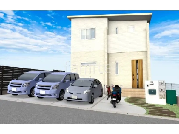 コンクリート枕木のアプローチが柔らかな印象の新築ナチュラル オープン外構