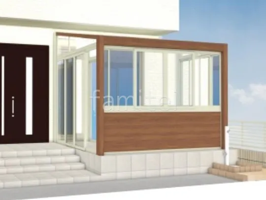 お庭スペースにタイルデッキの土間を新設し、その上にはガーデンサンルーム LIXIL 木製調ガーデンルームGFを設置し、自然な風合いと快適性を兼ね備えた半屋外空間を作りました。 ルーム内にはオプションで日除けを取り付け、天候に左右されずより快適に過ごせるようにしました。 さらに、水まわりには立水栓 ユニソン スプレスタンドを設置し、ガーデニングや清掃がしやすい便利な動線を確保しました。
