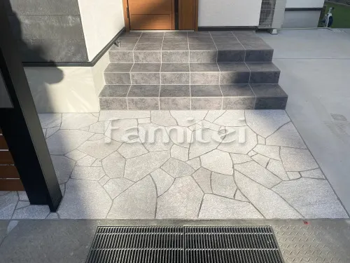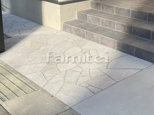 玄関アプローチ 床石貼り 乱形石