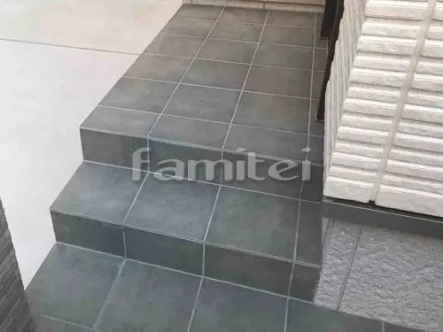 6/23玄関アプローチ階段 床タイル貼り LIXILリクシル ブルーノ IPF-300 BR-11