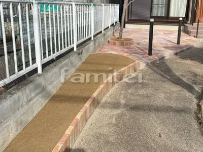 玄関アプローチ 床石貼り 乱形石 石英岩 フラミンゴ 既存植栽撤去