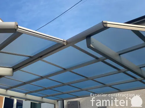 カーポート YKKAP エフルージュグラン FIRST 横2台用(ワイド ツイン) F型フラット屋根 特殊加工 斜めカット
