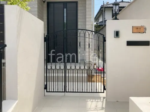 門袖 塗り壁 アイカ工業 ジョリパット塗装 LED門柱灯