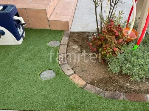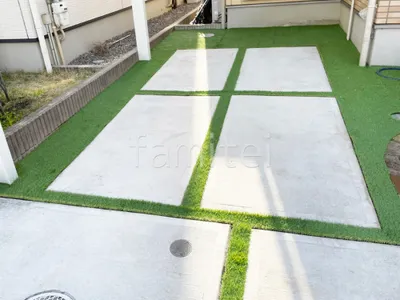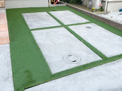 駐車場ガレージ床 人工芝 防草シート加工