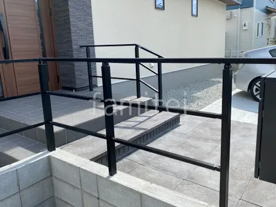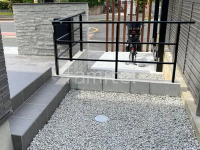 7/56玄関アプローチ 浮遊階段(蹴込み階段) 平田タイル フュージョンアウトドア